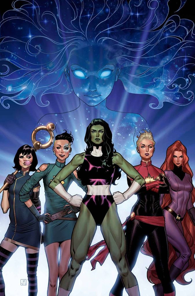 A-FORCE, ASSEMBLE! From the ashes of Battleworld, Marvel's newest hero SINGULARITY has risen and entered the Marvel Universe. But she didn't make the journey alone. To combat the most fearsome threats from across the multiverse, Singularity will summon the world's mightiest team of Avengers to her side: SHE-HULK. CAPTAIN MARVEL. DAZZLER. MEDUSA. NICO MINORU. Together, they are A FORCE to be reckoned with! Rated T+