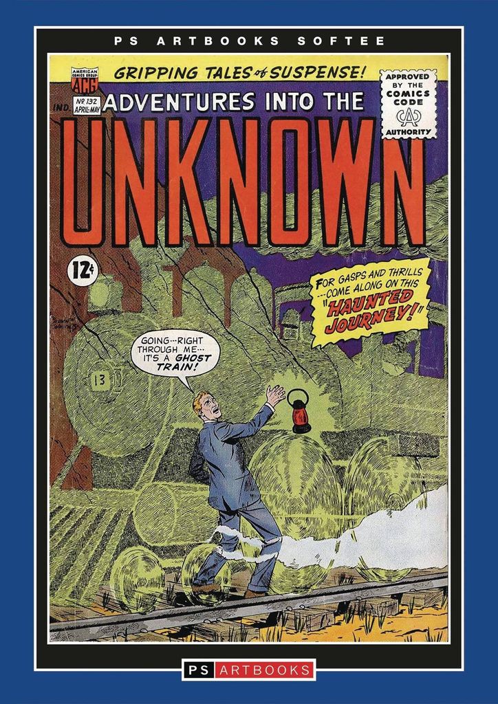 Adventure back into the Unknown with this latest PS Artbooks softie title, Adventures into the Unknown Volume 23! With the artistic talents of legends such as Derek Rutherford, Pete Constanza, and the great Kurt Schaffenberger, they gave us heroes, dinosaurs, aliens, monsters, ghosts, wizards and witches enough to satisfy all growing ghouls and boys! Collects ACG's Adventures into the Unknown #129-133 (October 1961/April 1962).