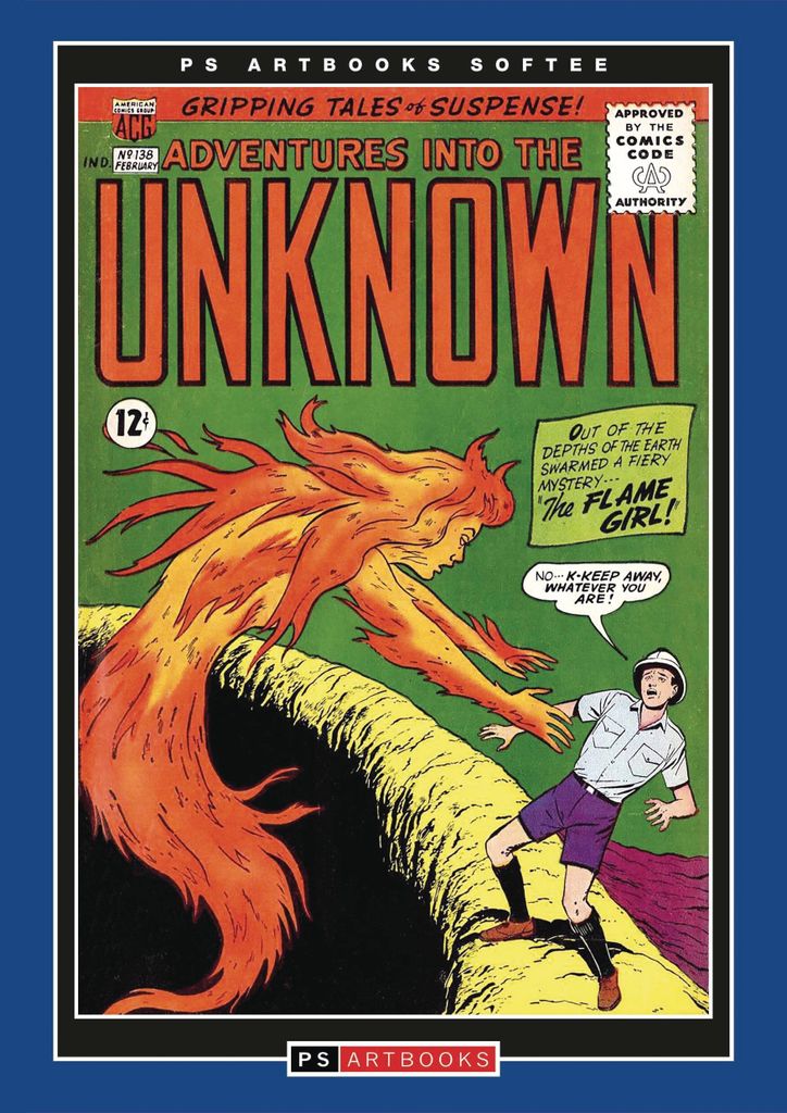 Adventure back into the unknown with this latest PS Artbooks softie title, Adventures into the Unknown. With the artistic talents of legends such as Pete Constanza and the great Ogden Whitney they gave us heroes, dinosaurs, aliens, monsters, ghosts, wizards and witches enough to satisfy all growing ghouls and boys! Collects Adventures into the Unknown #134-138.