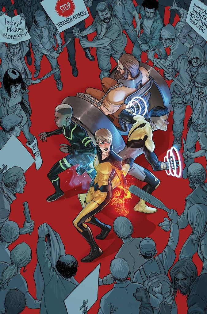 As the Terrigen Clouds move around the world they leave in their wake the wrecked lives of the Inhumanized. Crystal and her team are tasked to help as many of these NuHumans as possible, but it's not going to be easy. Not only are views of these new super-powered people varied (from fear to anger to amazement) but even those who get the powers aren't always glad to get them. Add to that the nineteen mysterious Skyspears that recently crashed into the Earth, and the Inhuman world just got a lot more complicated. Rated T+