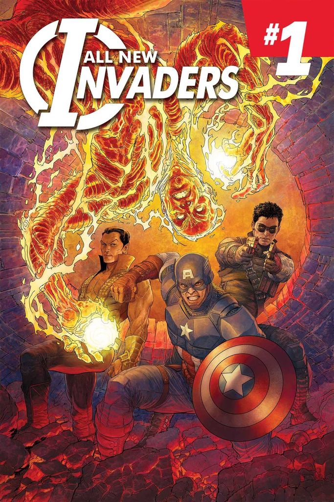 'GODS AND SOLDIERS' PART ONE • Eisner Award winner James Robinson (STARMAN, EARTH 2) returns to MARVEL, uniting with Steve Pugh (ANIMAL MAN, HOTWIRE, GEN-X) to create a unique, modern day take on the INVADERS. • The KREE EMPIRE intends to conquer the universe using a weapon that will grant them an army of NORSE GODS. • It falls to four heroes united by their past-CAPTAIN AMERICA, NAMOR, THE ORIGINAL HUMAN TORCH and the WINTER SOLDIER-who must now face the future and wage war against the Kree to save Earth.