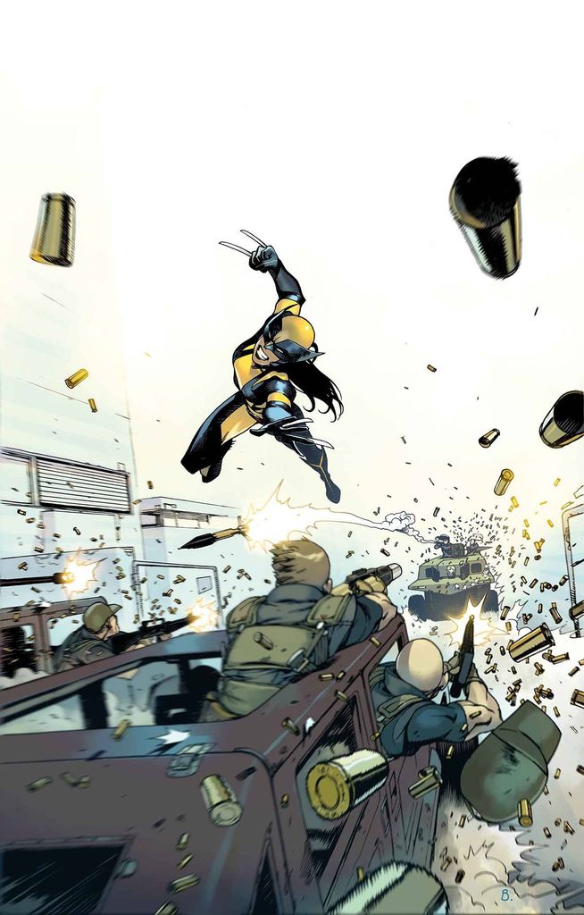 CAN YOU HANDLE THE DEADLY MYSTERY OF THE FOUR SISTERS? • It's WOLVERINE vs. TASKMASTER in this explosive issue! • Can Laura survive ALCHEMAX'S army of mercenaries? • What is the devastating secret the SISTERS have been keeping? Parental Advisory