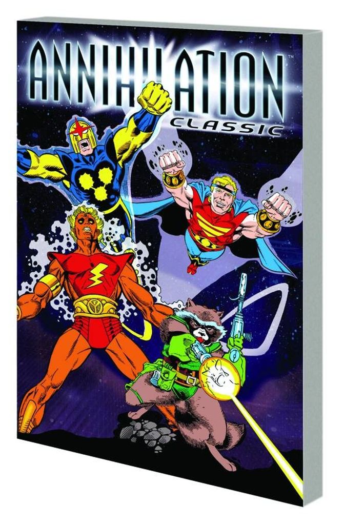 Discover the origins of space's greatest heroes, before they guarded the galaxy from annihilation! Gathered here for the first time are a selection of classic tales featuring the stars of the cosmic Annihilation sagas. Watch Bug battle Annihilus across the Marvel Universe! Witness one of the first battles between Thanos and Drax the Destroyer! Behold the artificial man Him became the hero Warlock! Quake in fear as Groot from Planet X attempts to conquer Earth! And learn the secret origins of Quasar, Nova, Star-Lord and Rocket Raccoon! Collecting BUG #1, TALES TO ASTONISH #13, NOVA #1, QUASAR #1, ROCKET RACCOON #1-4, MARVEL SPOTLIGHT #6, LOGAN'S RUN #6, MARVEL PREMIERE #1.