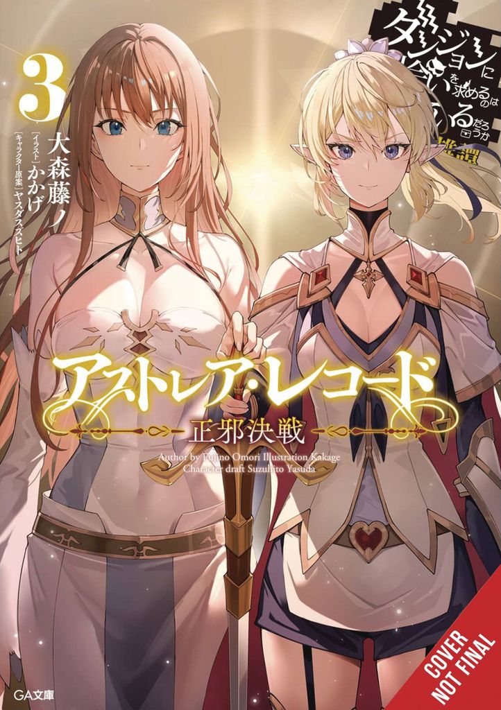 'The battle to decide it all has begun' Adventurers rally together to challenge the Evils, who have summoned a creature from the depths of the Dungeon in their quest to annihilate Orario. Braver draws up new plans, Warlord steels himself, and the familia of justice keeps their hope for the future alive. As the battle between good and evil rages, the adventurers receive help from the proud hero. This is the legend of how the stars of Astrea Familia managed to escape the Age of Darkness.'