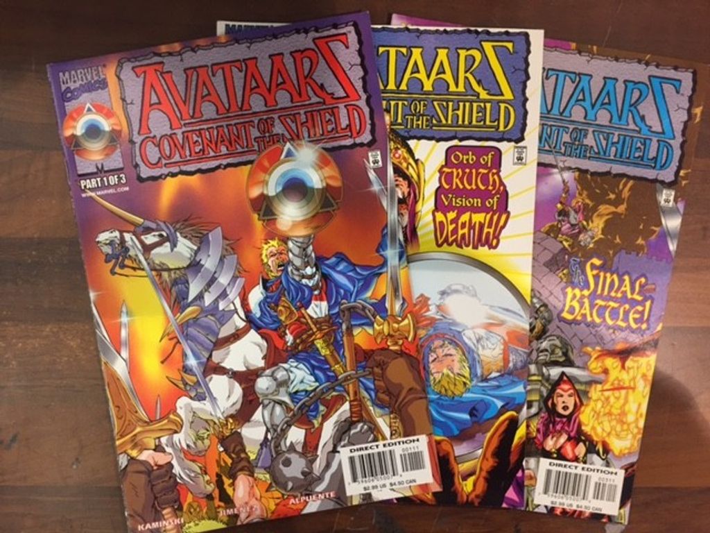 The Marvel Universe meets Lord of the Rings and unleashes a new team of costumed adventurers! In the far-off realm of Eurth, a deadly experiment is underway? One that could have dire ramifications for our world! There, in this place of fantasy and magic, the legendary Captain Avalon has gathered a band of hauntingly-familiar yet totally new characters to meeet the challenge of the Dreadlord! Standing against his dark power are the roguish archer Blackthorn; the roughneck Greenskin Smashtroll (who can't seem hold his meade); Warmaker, the middle-aged master of battle; the half-man/half-beast Nighthowl; Ironheart, the tragic knight; the flame-golem Scorch; Duke Ctranj, the mage of Avalon and more! But when Captain Avalon's son is abducted, these defenders of the realm must embark on a perilous quest to seek his return!