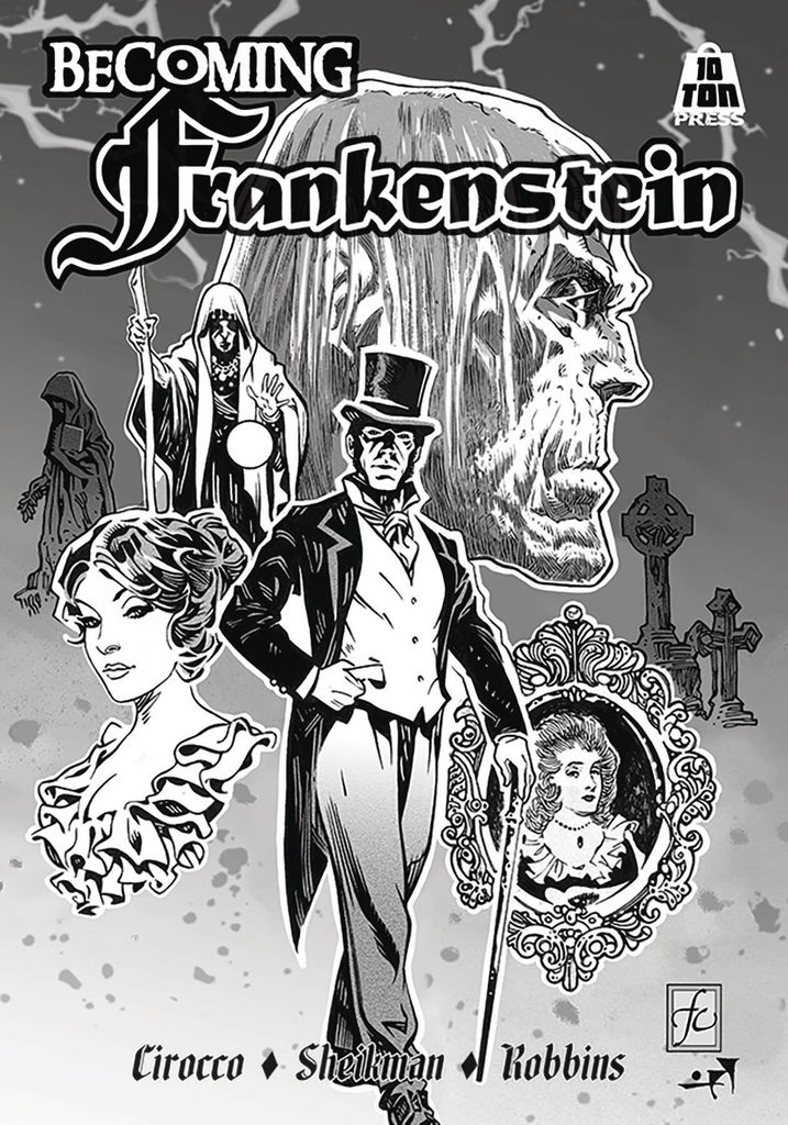 In the legends that have grown over the century about Frankenstein, none have been the concerns for the victims that died to make his monster come to life. Collecting all six issues of the hit comic book series Becoming Frankenstein. Now enjoy the lush's artwork of Frank Cirocco and Alex Shiekman in beautifully inked original art that's breath taking. Lettered by John Robbins. Book measures 7' x 10', capturing each page as it was created.