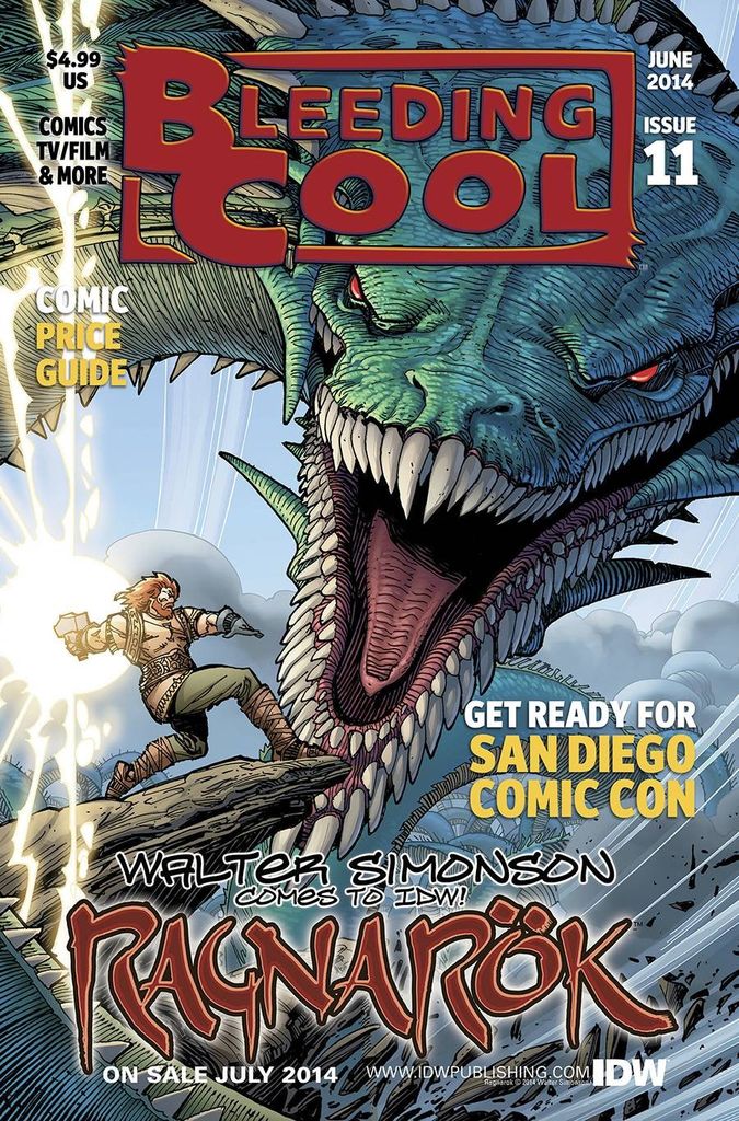 If you aren't reading Bleeding Cool Magazine, you are missing out on the best insider comic collecting magazine being published. Summer time means big new comics and crossover events industry wide and Bleeding Cool has you covered with news, previews, and speculation! Join us as we celebrate IDW's 15th anniversary in style with a look back on one of the biggest success stories in comics. We prepare you for San Diego and how to turn a trip to the Mecca of comics into a tidy profit! RICH JOHNSTON provides his unique viewpoint on the secrets the big companies don't want you to know about. Pay for your comic collection with savvy tips - thousands of fans have turned back issue lead into gold with Bleeding Cool's Hot Comics, Vintage Paper, and Price Guide features. Come celebrate the comic book medium with us! Delivering over 100 pages per issue on a bi-monthly release schedule, each issue is full of articles that are NOT AVAILABLE ON THE WEB!
