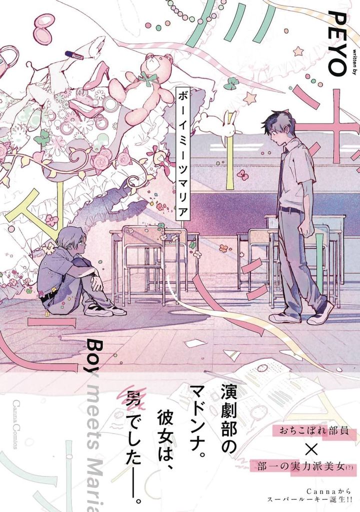 An LGBT+ manga exploring love and gender at a high school drama club. Taiga dreams of becoming an actor, so the first thing he does upon entering high school is join the drama club. There, he meets the beautiful, enigmatic Maria and immediately falls in love with her. Not long after, Taiga is told that she is actually a boy - but is that all there is to Maria's story? This beautifully illustrated one-volume tale, the debut work of creator PEYO before their untimely passing in 2020, explores the layered nature of personal expression and the fluidity of the power of love.