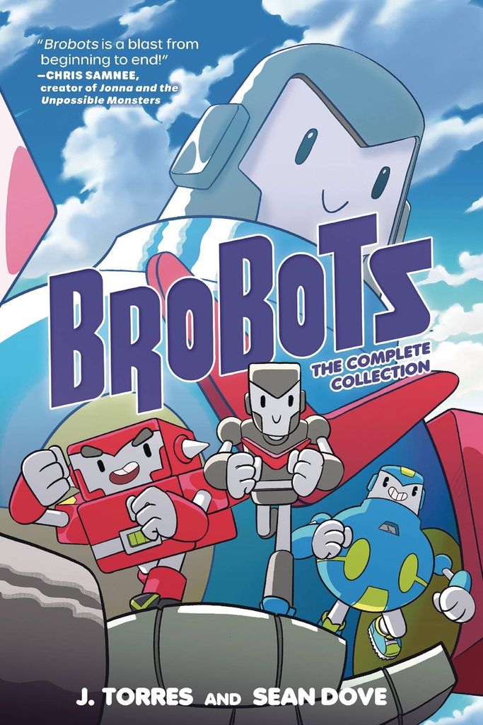 They're BROTHERS. They're ROBOTS. They're BROBOTS! When BIG problems come to Brotown, Joukei, Kouro, and Panchi team up to save the day! From a kaiju kerfuffle, some mecha malarkey, and lots of shoujo shenanigans, these bro-fessionals can take on any challenge. From award-winning author J. Torres (Teen Titans Go, Lola: A Ghost Story) and illustrator Sean Dove (Fried Rice) comes the timeless action-packed adventure about the power of teamwork and enduring friendship! Now collected in one big book with new bonus content, get with the bro-gram and read all three Brobots stories!