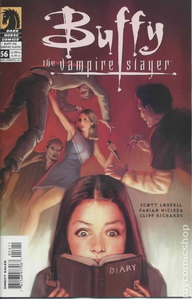 Buffy returned from her runaway road-trip with Pike...only to discover that Dawn has read her diary, and shared what she found with their parents, who see no other choice: after she's burned down the school gym, run off to Vegas, and apparently lost her mind . . . they have her committed. Buffy #56 begins the first of a four-issue arc, "Slayer Interupted" by Scott Lobdell, Fabian Nicieza and Cliff Richards, in which we finally see what happened to Buffy in that mental institution.