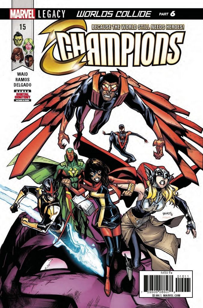 WORLDS COLLIDE Part 6 • The Champions/Avengers team faces its first real casualty in their ongoing struggle to prevent two planets from colliding - and that fatality changes the game! • The conclusion of WORLDS COLLIDE! Rated T+