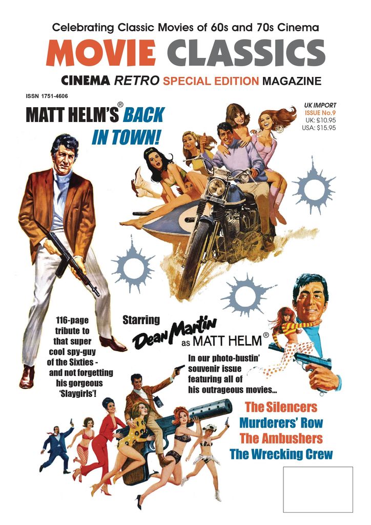 Our first Movie Classics Special Edition in four years brings a photo-packed 116-page perfect bound special devoted to that super cool spy of the Sixties, Matt Helm. This publication features in-depth reports on all four of the films released between 1966 and 1967: The Silencers, Murderers' Row, The Ambushers and The Wrecking Crew, plus chapters on the novels; Dean Martin; the music; the TV series-and not forgetting those sexy 'Slaygirls' which became synonymous with the series. There are also fascinating sidebar sections on the locations (then and now), the gadgets, the merchandise, and the vehicles. With over 650 photos, many never-seen-before, featuring rare behind-the-scenes candids, poster art, collectibles, and record sleeves. This is a limited edition of just 3000 worldwide.