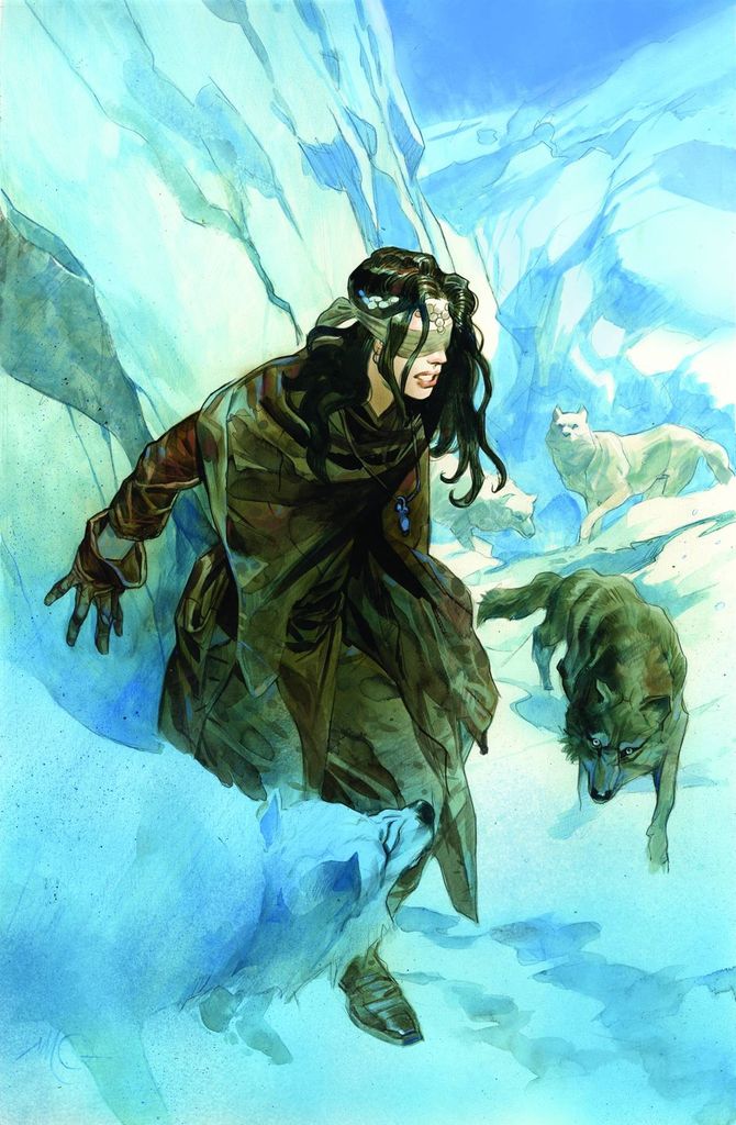 Brian Wood and Vasilis Lolos's "Border Fury" concludes, as the secret behind Conan's impostor is revealed! Separated on Cimmeria's frozen plains, Conan and Bêlit each fight handicapped while facing a deadly foe-Conan by the unexpected identity of his pretender and Bêlit by debilitating snow blindness!