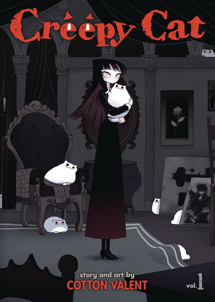 A full-color young adult graphic novel series that originated as a webcomic about a beloved ghostly cat! Flora moves into a mysterious mansion and finds it inhabited by a strange creature - Creepy Cat! Thus begins her strange and sometimes dangerous life with a feline roommate. This Gothic comedy brings the chuckles… and the chills!