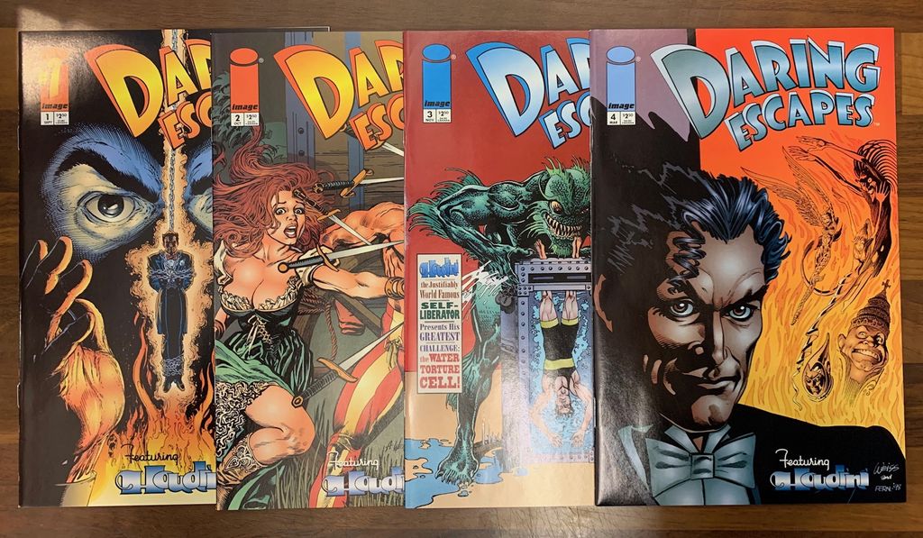 Instead of arriving at the Great Beyond, Harry Houdini has escaped to a strange dimensional junction known as the Overlap. The Overlap is a populated by extraterrestrial races and historical figures such as Judas Iscariot and Joan of Arc. Another strange fact of the Overlap is an egotistical, pretentious entity known as Nine who performs duties akin to management. One of Houdini’s last crusades was exposing fraudulent spiritual mediums, so it’s natural that he would be required to prevent any bona fide talismans from falling into the wrong hands. Any Houdini treatise would not be complete without a detailed reenactment of his painfully unorthodox method of escaping from a locked jail cell. The Impossible Possible has returned with his unflagging bravado and sarcastic nature in place. Now, if he could only keep a watchful eye on that damned Judas...