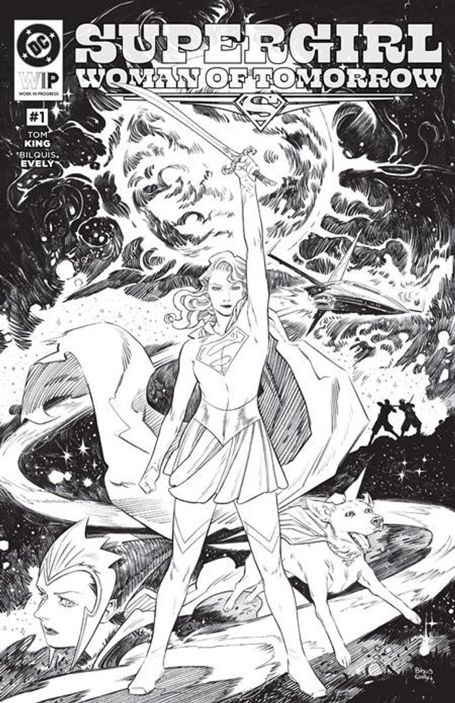 A LOOK AT THE STUNNING SUPERGIRL EPIC BY TOM KING AND BILQUIS EVELY! Step into the world of comics like never before with DC W.I.P. Get up close and personal with the stunning original artwork from one of comics' greatest artists. Featuring the original art of Supergirl: Woman of Tomorrow from Bilquis Evely! The brilliance of Evely's work can be seen like never before in this massive oversize presentation. Don't miss your chance to own this incredible, one-of-a-kind piece of comics history.