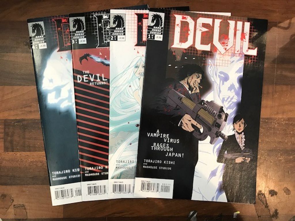 Story and art by Torajiro Kishi and Madhouse Studios. Manga artist Torajiro Kishi (Maka-Maka) and blockbuster anime studio Madhouse (Trigun, Paprika, Ninja Scroll) love comics. So much so that they've decided to publish an original, Western-style comic exclusively with Dark Horse! Enter Devil, a thrilling, sci-fi take on the vampire genre. A virus is raging across the planet, turning people into bloodsucking superhumans referred to as 'Devils.' Most victims die within days, sometimes months, but there's a new strain, a new class of Devil that threatens to overtake mankind with power and bloodthirst. This new class of Devils derive from an experiment to clone a virus victim, and it looks like science has created a true monster this time. Can Takimoto and the Devil Investigation Section of the Tokyo police force stop this societal scourge? We'll just have to see. Exclusive comic specifically for the American audience and only available from Dark Horse! This disease will devour mankind