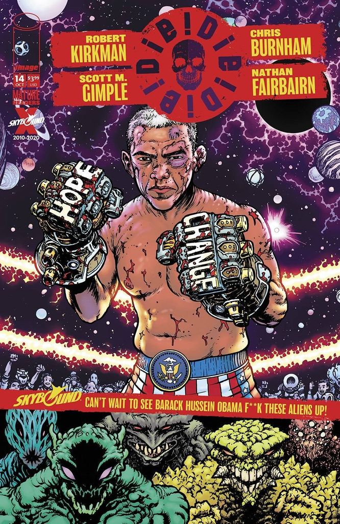 END OF STORY ARC President Obama has to fight for his life...and the fate of the planet Earth! We promise this ties in with the normal comic in some very cool ways. Trust us. That said, if you've never tried this series before, this would be a fun standalone issue to try out. It's nuts. I'm glad we had this talk. Let's do this more often.