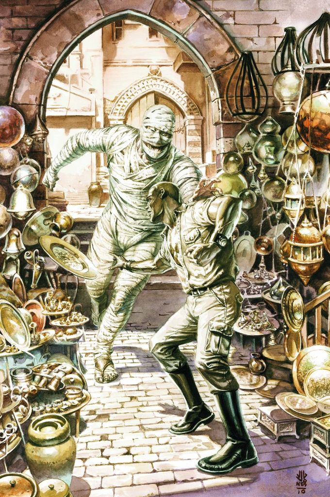 It's the start of "Raise The Khan," a globetrotting six-issue arc written by artist (and Doc Savage fan) extraordinaire J.G. Jones! When is a mummy not a mummy? When it's neither dead nor Egyptian, for starters. So what was a nearly unstoppable bruiser in bandages doing attacking the Egyptian wing of the Met in New York, and taking Johnny hostage on the streets of Cairo?