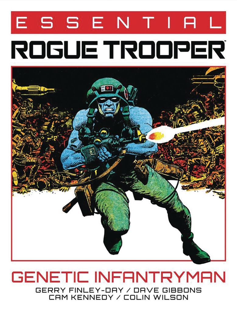 The first of a new series in the Essential line featuring 2000 AD's legendary war machine, Rogue Trooper! Rogue Trooper is the last of the G.I.s - genetically-engineered infantrymen designed to withstand the noxious atmosphere of Nu-Earth, a planet ravaged by the conflict between Norts and Southers. The lone survivor of the Quartz Zone Massacre, equipped with the bio-chips of his fallen clone brothers, he crosses the war-torn landscape in search of the Traitor General, the man responsible for their deaths - and he will not rest until he has his revenge! The first volume in the Essential series features stories by creators Gerry Finley-Day and Dave Gibbons (Watchmen), with art by Colin Wilson (Judge Dredd), Cam Kennedy (Star Wars: Dark Empire), and Brett Ewins (Bad Company, Skreemer).