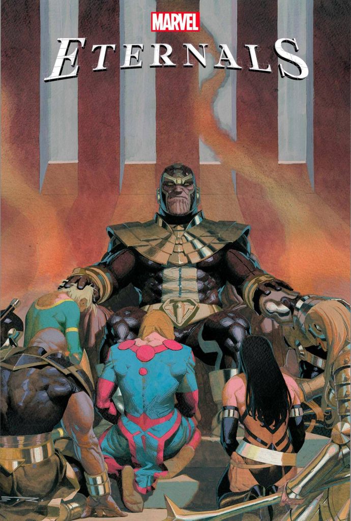 NEW ARC! NEW JUMPING-ON POINT! MORE THANOS! The Eternals have learned the truth of their existence. Their society is in shambles. Who can lead them? Who is the visionary that can lead them from the ashes? And how did they take the throne? Hail Thanos the Mad Titan, Eternal Prime. Welcome to a new day. Welcome to hell. RATED T+