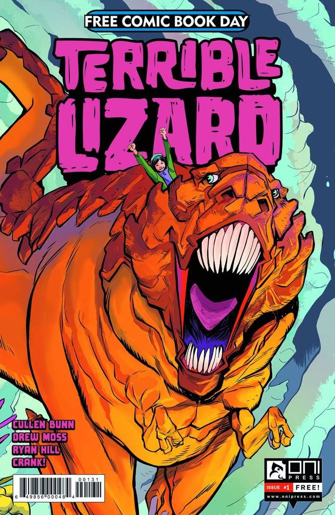 The touching story of a girl and her T-Rex… with a healthy dose of collateral damage and kaiju fighting on the side! When the scientists of Cosmos Labs punch a hole through spacetime, they pull a ferocious dinosaur into the present. The dinosaur imprints on teenage Jessica, proving to be more mischievous than vicious. But he is not alone, as transdimensional monsters begin attacking our world, and now Jessica and her new friend Wrex have to save the universe! For fans of bad science, dinosaurs, giant monster battles, and friendship, the all-ages friendly and action-packed TERRIBLE LIZARD begins here!