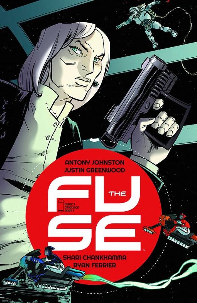 'GRIDLOCK,' Part One 22,000 MILES UP, THERE IS (STILL) NO BACKUP. They call it Gridlocking-maglev-bike races across the Fuse's vast solar arrays. Fast, dangerous, and very illegal. When a gridlocker turns up dead, Klem and Ralph begin their own race to catch a killer! PLUS: Bonus backup strip 'TABLOID' starts this issue!