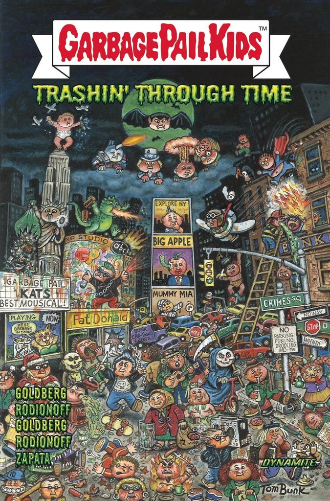 The unhinged trio of ADAM F. GOLDBERG, HANS RODIONOFF, and JEFF ZAPATA have rejoined forces to bring you their latest and greatest installment in pop culture's most outrageous origin saga with all-new collections of Garbage Pail Kids: Trashin' Through Time! Proceeding directly from the World War II finale of their previous chapter (Garbage Pail Kids: Origins, also available for order!), our heroes find themselves transported to the 1980s - where Garbage Pail Kids rule the world! That's right, the Garbage Pail Kids are now the dominant species on Earth, and normal humans have been subjugated and forced to live as outcasts from society. It's the Planet of the Garbage Pail Kids - and we just live on it! Available in both trade paperback and hardcover editions, this time-twisting tale collects all five issues of the original series and includes a comprehensive cover gallery featuring can't-miss masterpieces from such GPK luminaries as TOM BUNK, JEFF ZAPATA, CHRIS MEEKS, DUSTIN GRAHAM, RAY LAGO, LOWELL ISAAC, DAVID ASCEVEDO, and ROBERT JIMENEZ!