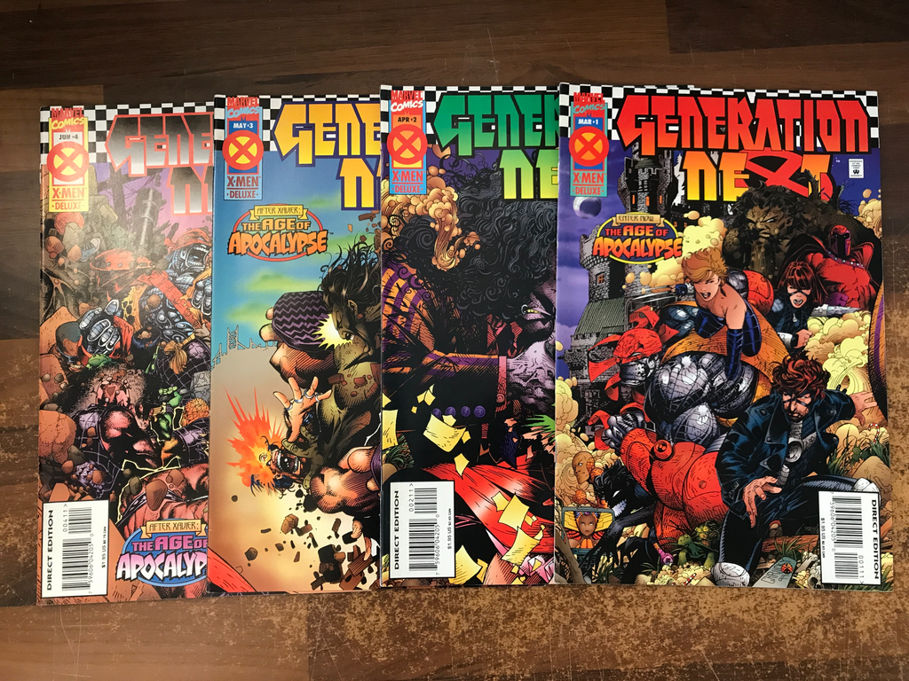 Written by Scott Lobdell. Art and cover by Chris Bachalo and Mark Buckingham. From The Top; Apocalypse rules the world with an iron hand and only Magneto and his X-Men stand to resist him and his subjugation of all humans; Colossus and Shadowcat train the next generation of the X-Men with heavy handed brutality as the world they live in is just that kind of place; Magneto tells Colossus and Kitty of his visit by Bishop, a mutant from another reality where Xavier did not die; He has decided to go back in time to save Xavier's life but needs a mutant with time traveling powers to do so; He wants Generation Next to get this mutant for him; Their target: Illyana, the little sister Colossus thought was long dead who is a slave of Apocalypse at the Portland Core. Text piece about the Age of Apocalypse.