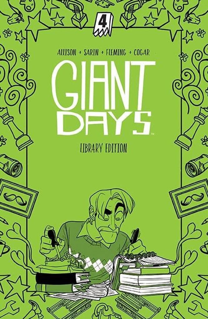 The Holidays are coming and love is in the air at Sheffield University! While back home in Northampton visiting her six sisters and numerous niblings for the holidays, Susan reconnects with McGraw. Too bad he's still dating Emilia…at least for now! Meanwhile, Daisy and bombastic exchange student Ingrid are also testing the waters of first love. Even insufferable Dean Thompson found virtual romance, while Ed agrees to be match-made by Daisy. As the spring semester wears on, the question looms…will Daisy, Esther, and Susan stay housemates for their third year? Or will love tear the dream-team apart, as certain folks want to give living with their paramours a try? The Giant Days Library Edition Volume 4, written by John Allison (Wicked Things, Steeple) and illustrated by Max Sarin (Harley Quinn: The Animated Series: The Eat. Bang! Kill Tour) and Liz Fleming (Steven Universe) collects the next eight issues of the Eisner Award-winning and Harvey Award-nominated series along with the 2016 holiday special, all in a deluxe hardcover. Collects Giant Days #25-32.