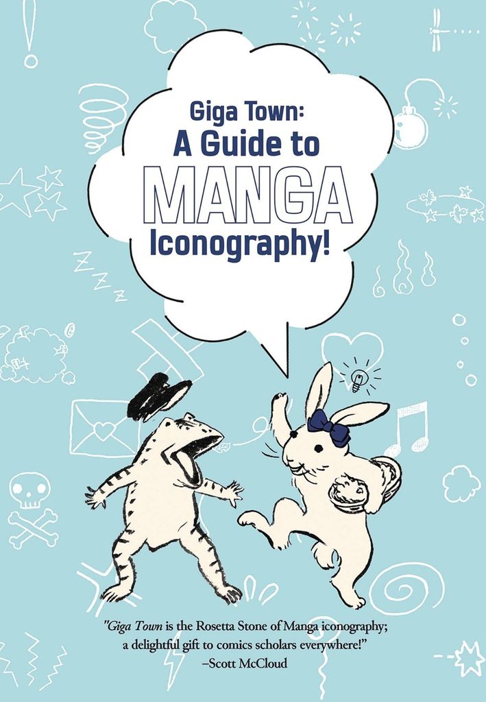 Manga symbols - 'manpu' in Japanese - are iconic or symbolic expressions used uniquely in manga, such as sweat drops, popping veins, and smoke puffs. Giga Town: A Guide to Manga Iconography! is (probably) Japan's first guide to this manga iconography, collecting and explaining these symbols, with a short manga featuring the frolicking animals of the famous Japanese scroll Choju-jinbutsu-giga to explain each one!