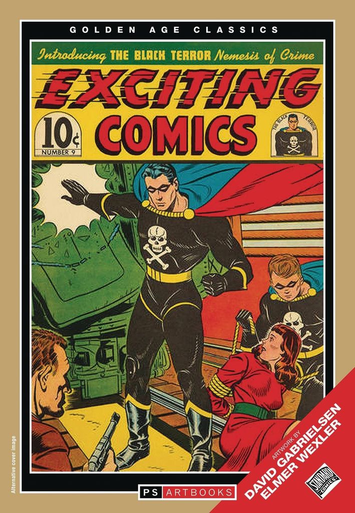 Introducing The Black Terror, Nemesis of Crime! Bob Benton was a pharmacist working on a tonic to pep people up, who developed 'formic ethers' instead thanks to a comment made by his new assistant, Tim Roland, inspiring him along a new path. Inhaling the vapours from his discovery granted him superhuman strength, which he used to become the crimefighter the Black Terror, battling hoodlums, saboteurs and enemy agents in equal measure. Tim, similarly empowered, became his sidekick - together known as the Terror Twins! Previously released as a hardcover and now available for the first time in our popular SOFTEE format! Collects Exciting Comics #9-20 (May 1941 - July 1942).