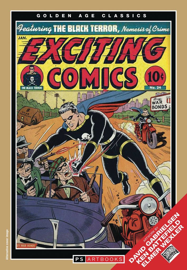 PS Artbooks presents the continuing adventures of The Black Terror, Nemesis of Crime! Bob Benton was a pharmacist working on a tonic to pep people up, who developed 'formic ethers' instead, thanks to a comment made by his new assistant Tim Roland inspiring him along a new path. Inhaling the vapors from his discovery granted him superhuman strength, which he used to become the crimefighter the Black Terror, battling hoodlums, saboteurs and enemy agents in equal measure. Tim, similarly empowered, became his sidekick, together known as the Terror Twins! Collects Exciting Comics #33-50 (June 1944-August 1946).