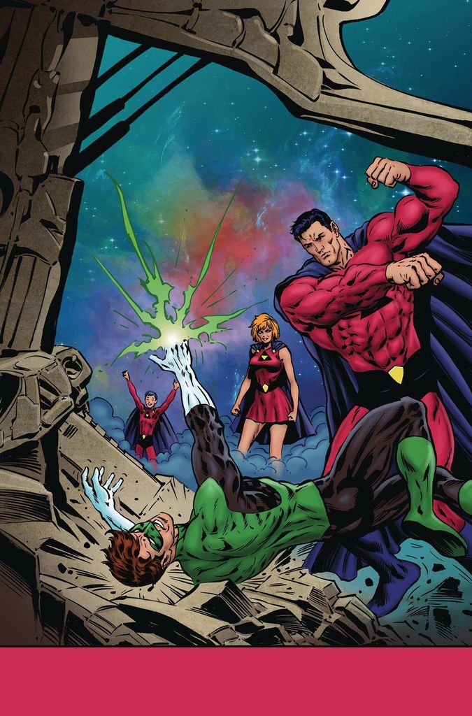 In the latest issue of this 12-part miniseries, Green Lantern Hal Jordan must test the limits of his ring's capabilities when he must take down two ruthless killers, each with the powers of Superman! Defying the will of the New Guardians, Hal finally finds his fugitive alien murderers: the deadly husband/wife team of Hyperman and Hyperwoman - but the consequences will be devastating! These super-spouses have already murdered one GL who tried to thwart their lust for cosmic power… and they won't hesitate to do it again!
