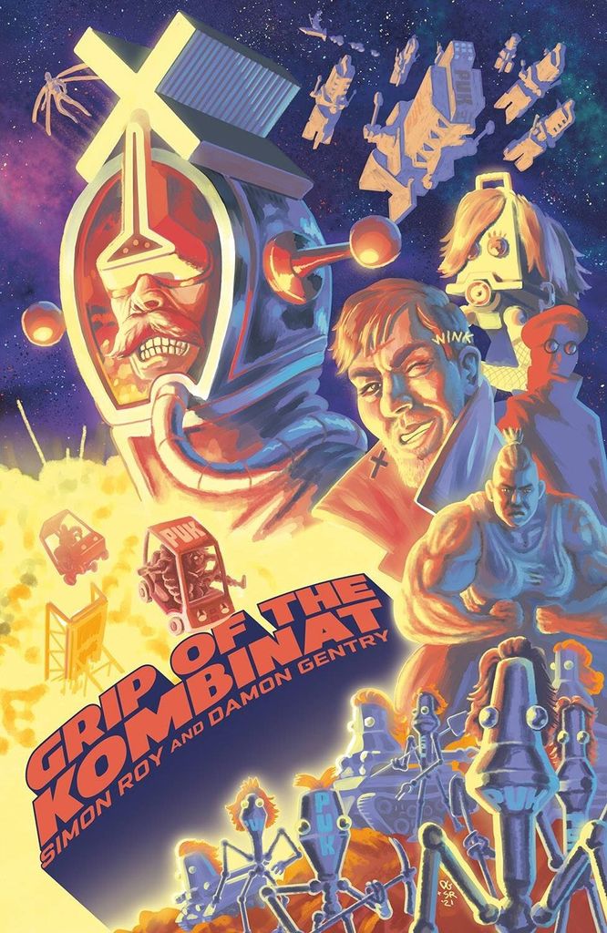 Two megacorporations wage an eternal tug-of-war for the ruins of our future solar system. Pulpy sci-fi adventure, escalating unintended consequences, wry satire, and pure goofery combine in seven potent chapters of comics entertainment to make GRIP OF THE KOMBINAT, an unholy lovechild of Verhoeven and Asimov. A original graphic novel from the deranged minds of comics wündérkìñdêr SIMON ROY (PROPHET, HABITAT, FIRST KNIFE) & DAMON GENTRY (Sabertooth Swordsman, Vinegar Teeth).