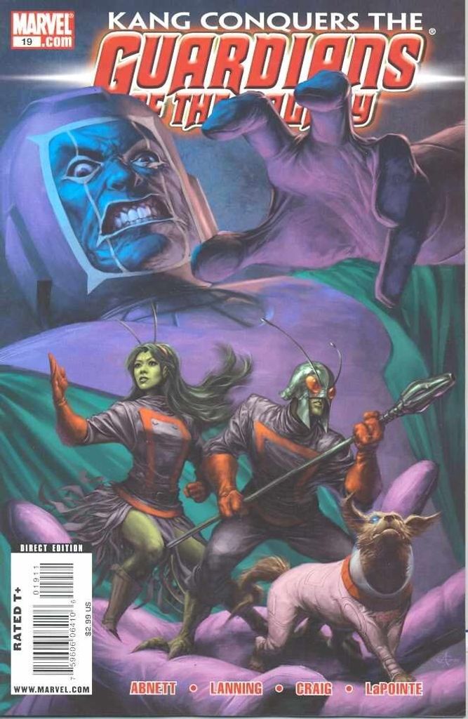 Will Kang Conquer the Guardians? Rocked by the aftershocks of War of Kings, Star-Lord's team - now castaways across shattered timelines - are desperate to find a route home before all possible futures fuse into one dark nightmare! Guest-starring the original Guardians of the Galaxy (sort of) and the infamous time-traveling despot who may be their only hope! Yes, it's more sci-fi shenanigans from the book that has ComicBookResources.com raving, "Abnett and Lanning do an amazing job of delivering a quick-moving, jam-packed, high-octane, bombastic epic."