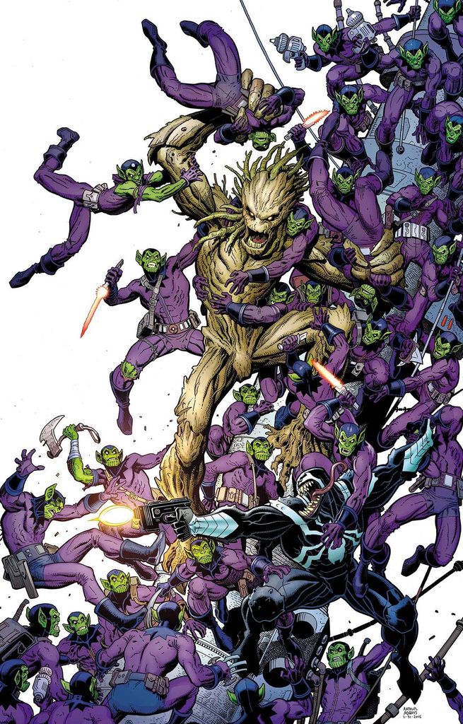 VENOM AND GROOT VERSUS: SKRULLS! • Venom and Groot get in WAY over their heads fighting against SKRULLS! • Last time this writer wrote those aliens it changed the Marvel Universe. This time he's thinking even bigger! Rated T