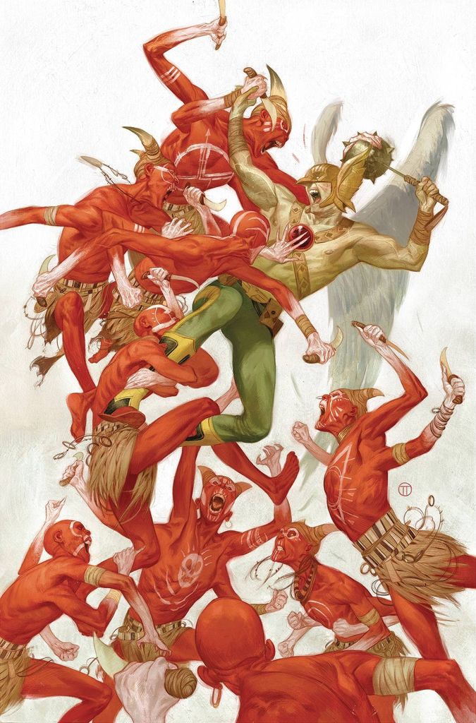 The Deathbringers don't know what hit them when all of Carter Hall's past lives descend on the streets of London to defend the planet. With an army of hundreds at his back, Hawkman starts to turn the tide of battle. It's a war for the fate of the universe as these two armies clash!