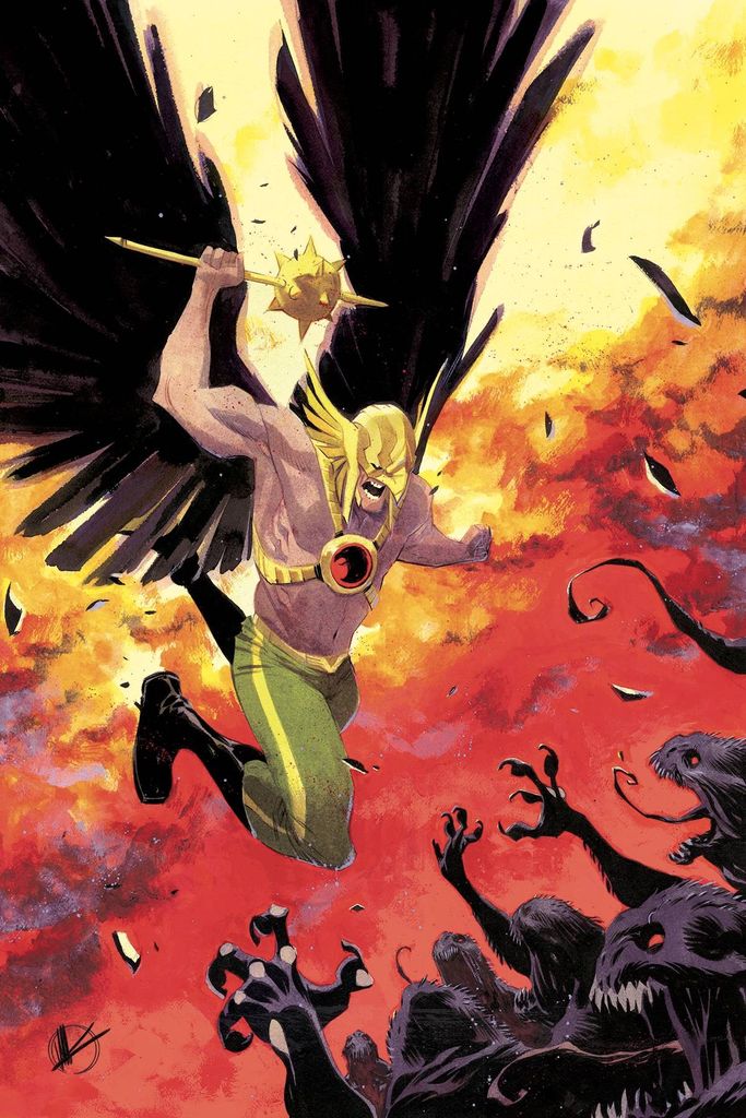 The time-and-space-tossed Hawkman arrives at his latest destination, the sub-atomic world known as the Microverse. Luckily, he meets an old friend there-his longtime Justice League partner the Atom. Ray Palmer learns that the past lives of Carter Hall leave clues for the Winged Wonder to follow. Too bad the next clue leads them to a thinking planet known as Moz-Ga, who's thinking he'd like very much to destroy Hawkman and Atom!
