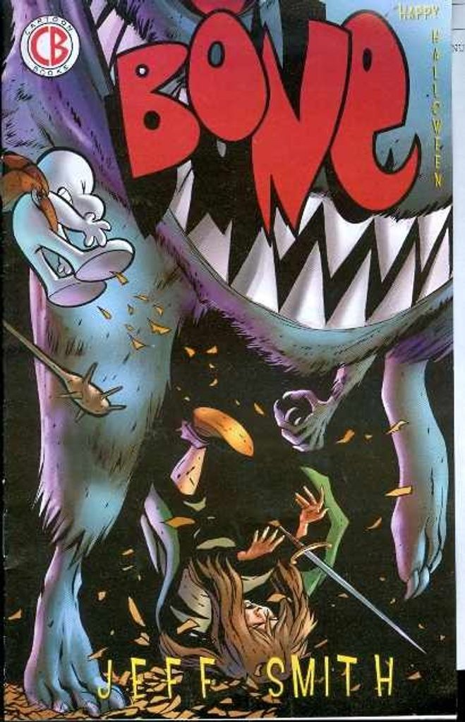 As Halloween approaches we found our creepiest, funniest - and scariest - excerpt from the pages of Bone! As Fone Bone, Gran'ma and Thorn make their journey to Atheia, they have an unexpected encounter with the two stupid Rat Creatures - and a bloody battle ensues! Things are bound to get worse as the mighty Kingdok arrives on the scene, ready to shred Gran'ma to bits. This is an excerpt from Bone #21, which appears in full in the color graphic novel: The Dragonslayer from Scholastic/Graphix, and in B&W in Bone: One Volume Edition from Cartoon Books!