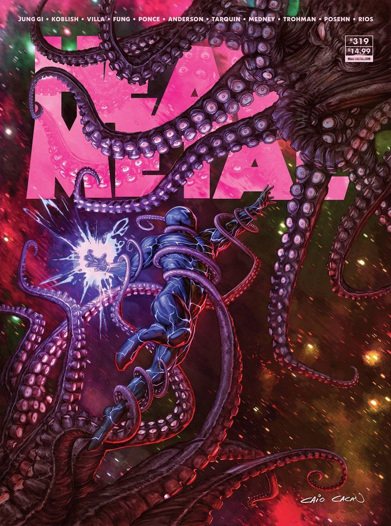 The new cyberpunk combat serial RAMGOD debuts from writers Morgan and Owen Rosenblum and artist Caanan White! WIREMONKEYS science horror saga reaches its terrifying halfway mark! THE AXE by Fall Out Boy's lead guitarist Joe Trohman and writer/actor Brian Posehn with Deadpool artist Scott Koblish nears its gruesome end! SPACE PIRATES UNIT DOLORES continues the galactic mission! THE ADVENTURES OF ADRIENNE JAMES reaches higher stakes! Chris Anderson's surreal adventure SOMETHING SEEMS OFF returns!
