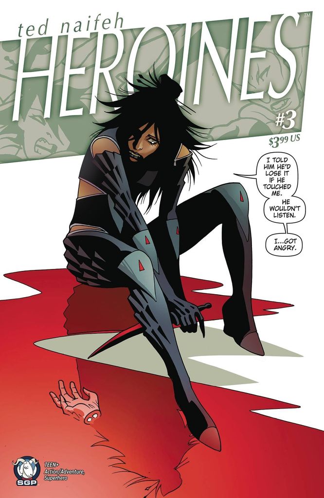 Ted Naifeh's new creator-owned miniseries continues with Marcy and co's antics and actions in Heroines #3. Marcy and her team soon find that victory brings out their personal demons. Will they triumph over the nefarious Doctor Momus only to break apart from within? For fans of Birds of Prey, Venture Bros, Damage Control, Captain Marvel, Shadoweyes.