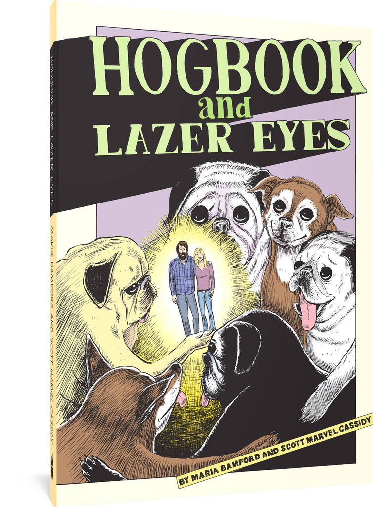 Fans of Maria Bamford's acclaimed quasi-autobiographical Lady Dynamite Netflix series already know of her romance with LA painter Scott Marvel Cassidy, as well as her droll pug sidekicks Blueberry and Bert. Now the story has been recounted in the graphic novella Hogbook and Lazer Eyes, written by Bamford/Cassidy, drawn by Cassidy, and all told by the rescue dogs they've adopted. For those unfamiliar with the story, newly single fortysomethings Maria Bamford and Scott Cassidy each signed up on the dating site OkCupid, under the respective usernames 'Hogbook' and 'Lazer Eyes.' They went on a date, and then another, and soon, despite a history of Bipolar II disorder and unhealthy relationships for each of them, they fell in love and were married in 2015. We view all of this through the prism of their pug housemates, including Blueberry and Bert (who has an unnatural obsession with Michael Flatley of 'Riverdance' fame), and the elderly bonded pair Betty and Arnold (who recount their star turn as interplanetary canine scientists in the second season of Lady Dynamite). Cassidy's fine art training translates with ease into graphic storytelling, with a naturalistic illustrative style that is a pitch-perfect match for Bamford's comic timing, making Hogbook and Lazer Eyes a beautifully illustrated love story, told by some incredibly charming pugs. Scott Marvel Cassidy is a graduate of the Pennsylvania Academy of the Fine Arts whose work has been exhibited in New York, Los Angeles, Philadelphia, and elsewhere. Maria Bamford is a writer, actor, and stand-up comedian. They live in Los Angeles, CA.
