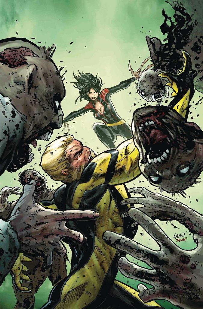ZOMBIES, ZOMBIES and EVEN MORE ZOMBIES! • This is what DAKEN, SABRETOOTH AND LADY DEATHSTRIKE are up against int eh small town of Maybelle… • …But who is responsible for the grotesque transformation of this peaceful town? • And what happens when one of our intrepid villains gets bitten? Parental Advisory