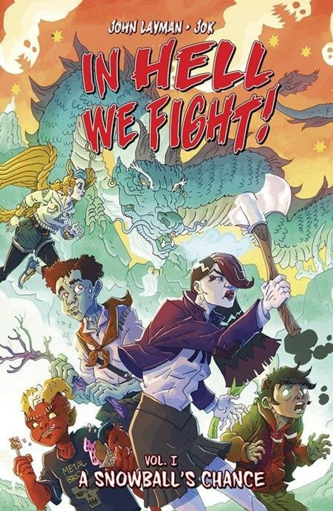 Life in hell ain’t easy. Demons try to torture you for all eternity. Monsters want to eat you. There’s a stunning lack of reliable indoor plumbing. And it’s almost impossible to get ice cream. At least, until today, when three condemned teens and their annoying tag-along demon frenemy embark on a daring scheme to hijack a demon lord’s delivery truck. What happens next will take them on an epic journey across the underworld, an infernal excursion of nonstop excitement, danger and adventure. Presenting a devilishly fun new series from multiple Eisner-winning writer/letterer JOHN LAYMAN (CHEW, Suicide Squad: Kill Arkham Asylum) and Argentinian superstar artist JOK. Collects IN HELL WE FIGHT #1-5, plus short stories