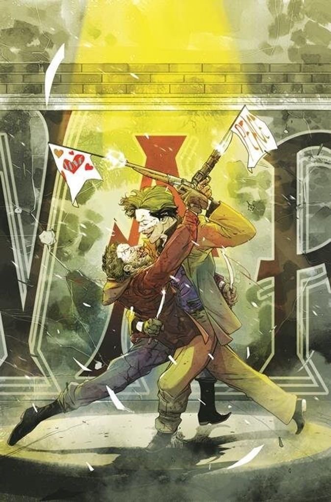 What are dark, red, and not safe for anyone? The streets of Gotham as the battle of The Jokers begins. The good news for the people of Gotham is that someone is going to finally put an end to The Joker's reign of terror. The bad news is that person will also be The Joker!