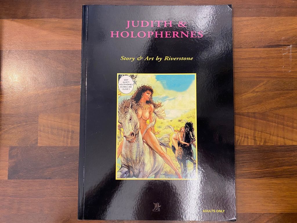 After the torrid romance of "Thamara & Juda," Riverstone, the Renaissance Master of adult comics illustrates another episode from the pages of the best selling book of all time: The Bible. King Holophernes has invaded Hebrew lands and is closing on Bethulia. Judith and her servant Esther come to Holophernes' camp to plead with him for his clemency. It just happens that Holophernes has a tremendous... er... weapon that he gets to use on war captives... And what you expected does indeed happen... Of course, you might as well pick up your Bible and read all about it... But you wouldn't get the fabulous painted artwork of Riverstone to raise you spirits even higher.