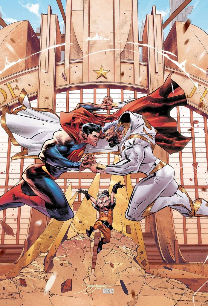 'The Sixth Dimension' part two! The Leaguers come face to face with their future selves in the Sixth Dimension and explore the path that lies before them. Meanwhile, Superman is trapped on a world with no light and hundreds of dead Supermen! Can the Man of Steel escape before his powers completely disappear? To do that, he'll need to learn who captured him!