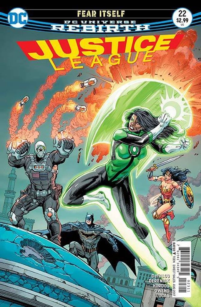 'ONLY HUMAN' part two! The One Earth movement spills first blood! Green Lanterns Simon Baz and Jessica Cruz are forbidden from using their power rings while Superman himself is imprisoned in an aliens-only gulag! A planet rages as Batman and the remaining Justice Leaguers race to unravel the conspiracy behind the One Earth movement before the world tears itself apart. RATED T