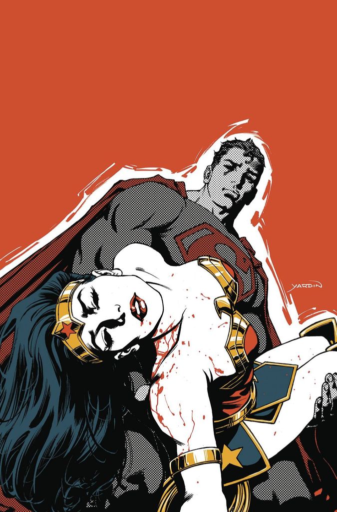 'JUSTICE LOST' part two! Trapped in the chaos of tribal conflict, the Justice League becomes divided over whether to intervene in a civil war in order to protect thousands of fleeing refugees-and a crucial decision could have dire consequences for one of their members! Meanwhile, Batman and Aquaman clash over how to take down the nemesis known only as the Fan, who holds all of their secrets hostage.